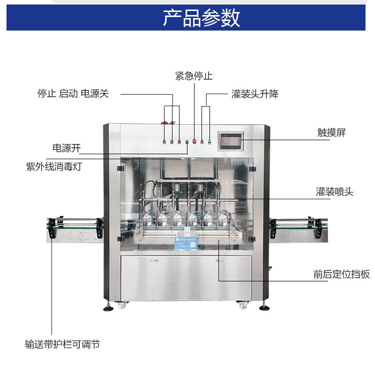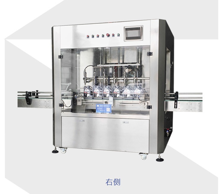 該六頭柱塞式全自動潤滑油灌裝機獨特的灌裝頭設計及真空回吸系統(tǒng),確保灌裝過程無殘油滴漏,快慢雙速灌裝,灌裝速度可調(diào),杜絕溢瓶現(xiàn)象。