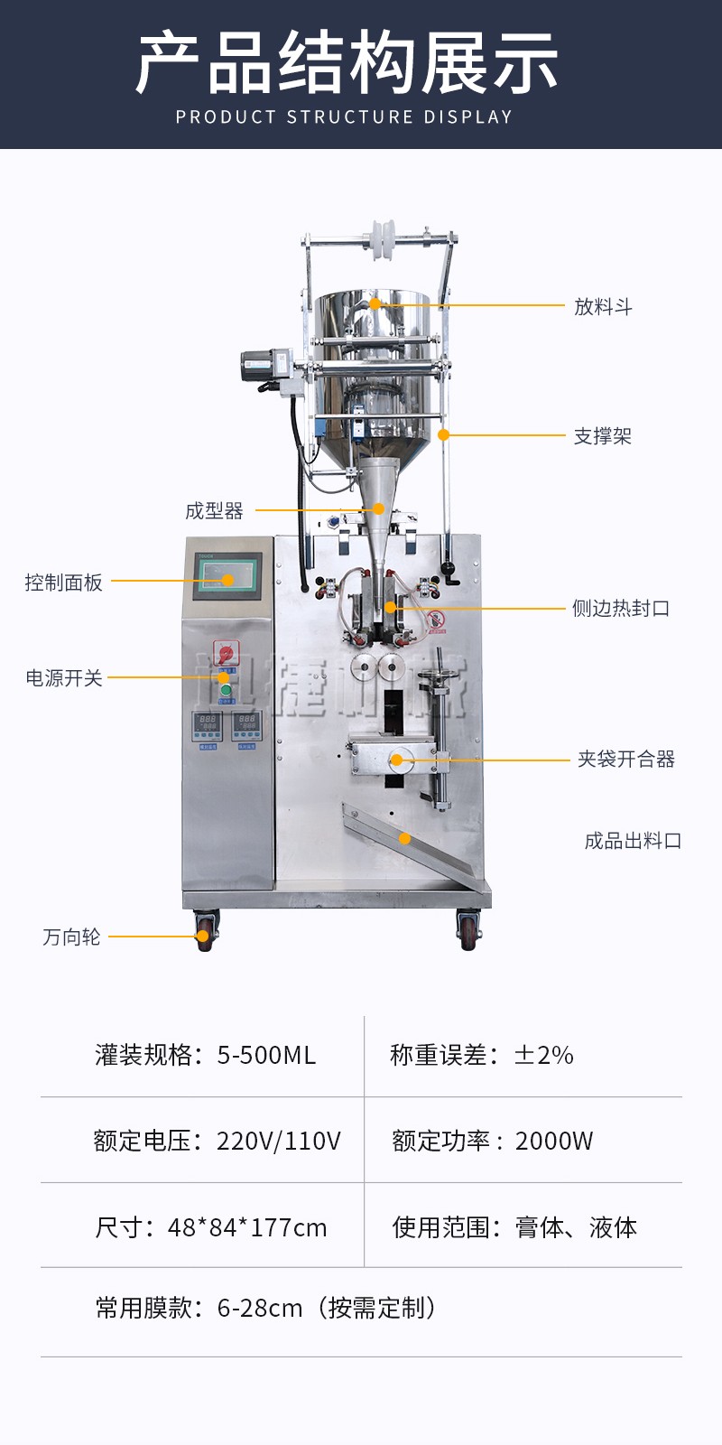 光電跟蹤及無極調(diào)速于一體,可周期完成下料、計(jì)量、日期打印、制袋、充填、封合、熱壓批號、分切計(jì)數(shù)等作業(yè)。