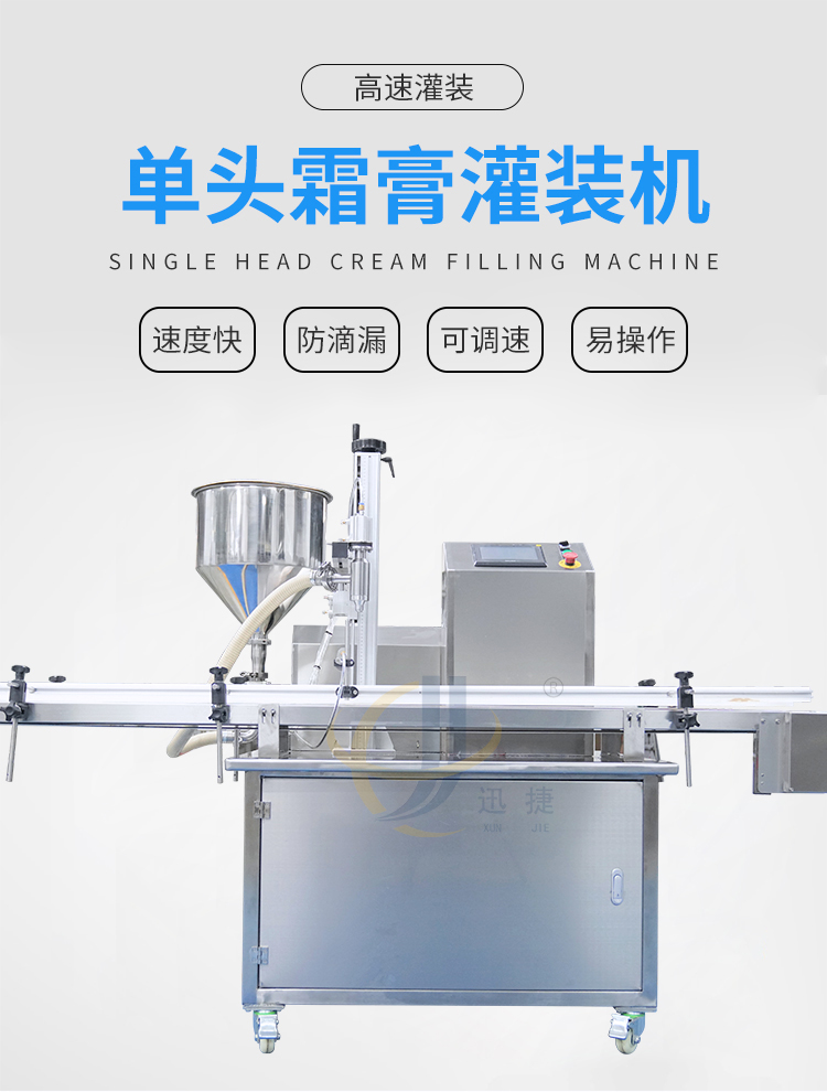 單頭膏體灌裝機適用范圍:廣泛用于化妝品、食品、醫(yī)藥、化工原料等行業(yè)。各種膏霜、精油、洗衣液、洗發(fā)水、沐浴露、半流體