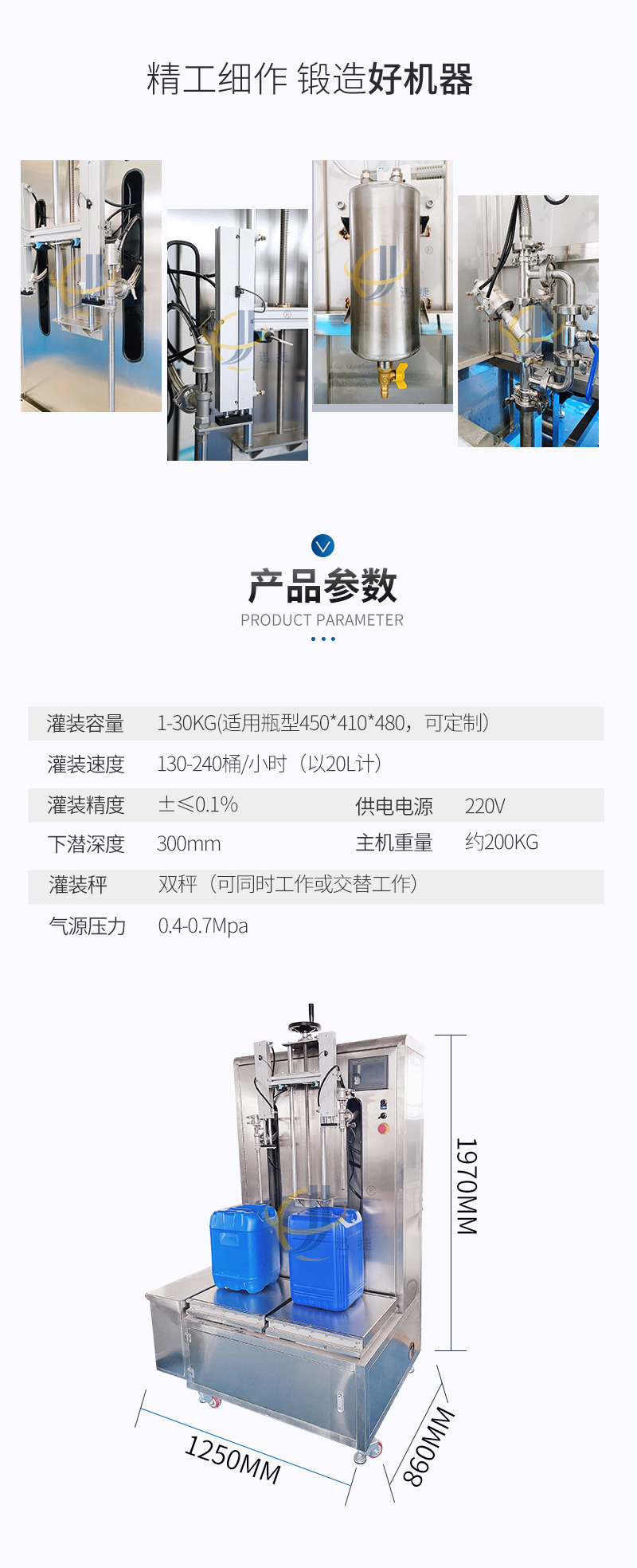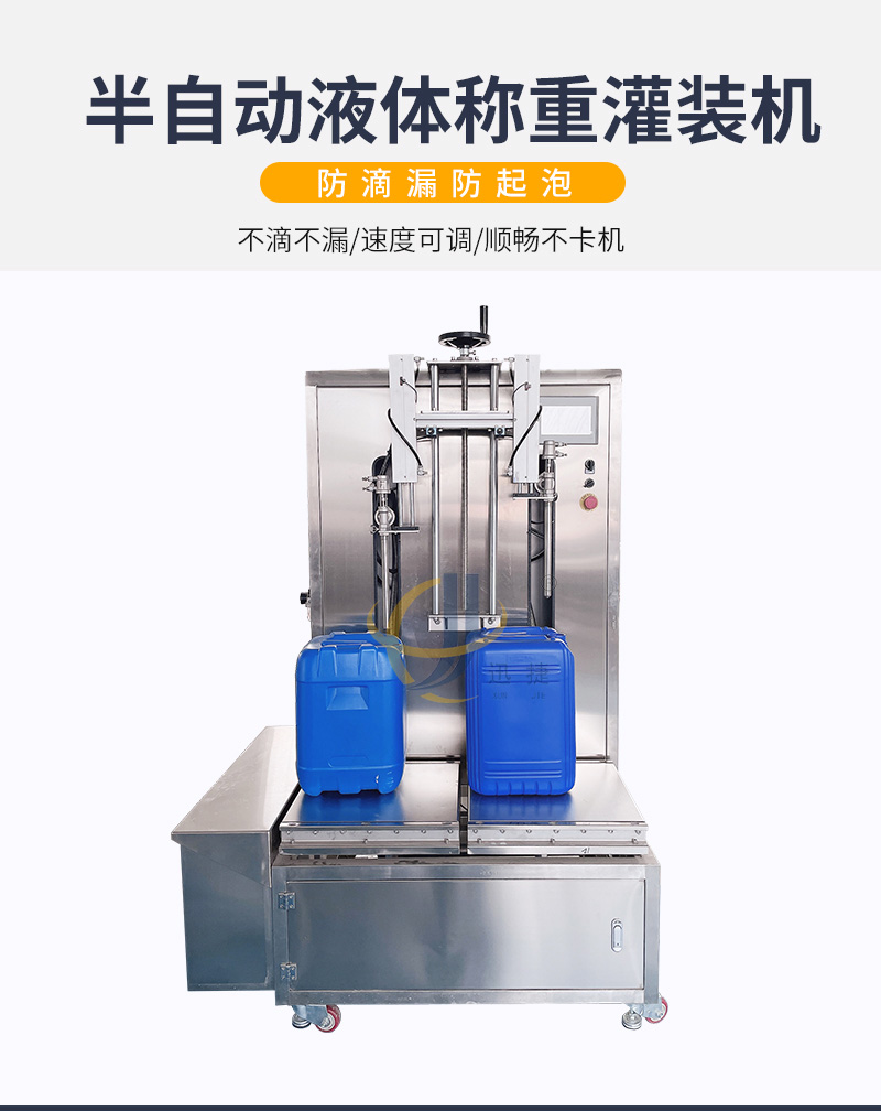半自動(dòng)液體稱(chēng)重灌裝機(jī)適用于各種水劑以及高泡類(lèi)液體的灌裝。如:飲料、醋、醬油、液體化妝品、蛋白液、玻璃水等。