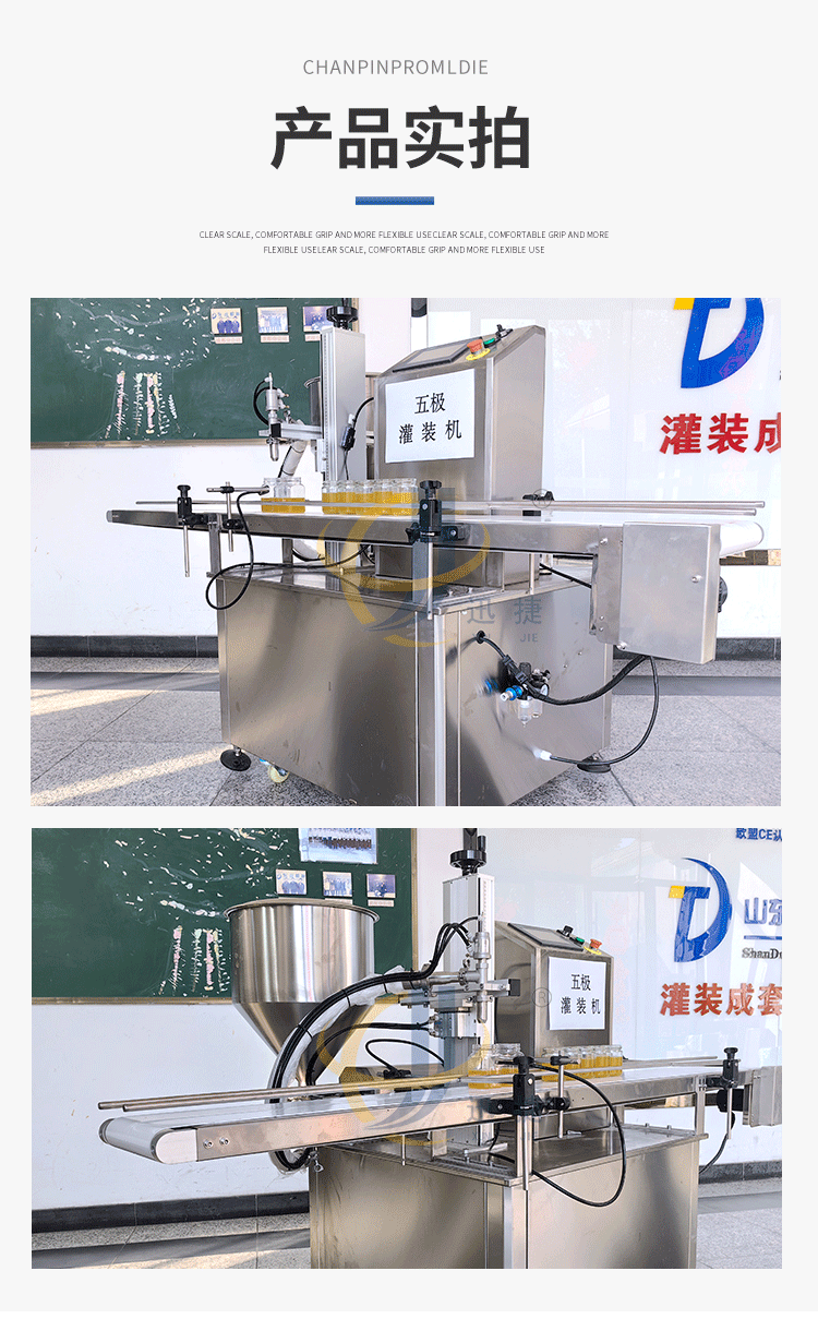 五極灌裝機:極快-單頭2200瓶/時 極簡-操作簡單 極廣-啥啥都能灌 極穩(wěn)-24小時不停機 極準(zhǔn)-200g誤差小于1g。它可以和真空旋蓋機搭配使用。