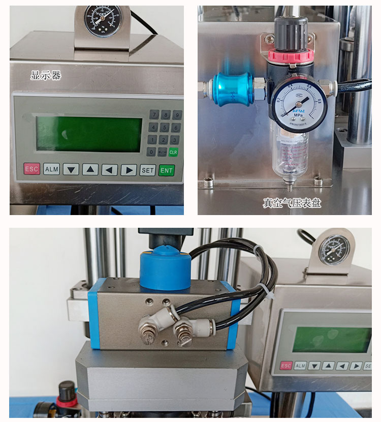 3、半自動蜂蜜真空旋蓋機通過更換少量部件,能適用于形狀、尺寸不同瓶子的真空旋蓋;