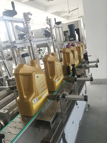 潤(rùn)滑油灌裝旋蓋一體機(jī)為活塞式計(jì)量方式。計(jì)量范圍為1升-5升,離合式旋蓋結(jié)構(gòu),確保旋蓋合格率高,不傷蓋。本設(shè)備為灌裝旋蓋一體機(jī),結(jié)構(gòu)緊湊,性價(jià)比高。該型號(hào)灌裝機(jī)適用于醫(yī)藥、日化、食品、農(nóng)藥及特殊行業(yè),是對(duì)酒精等液體進(jìn)行灌裝的理想設(shè)備。