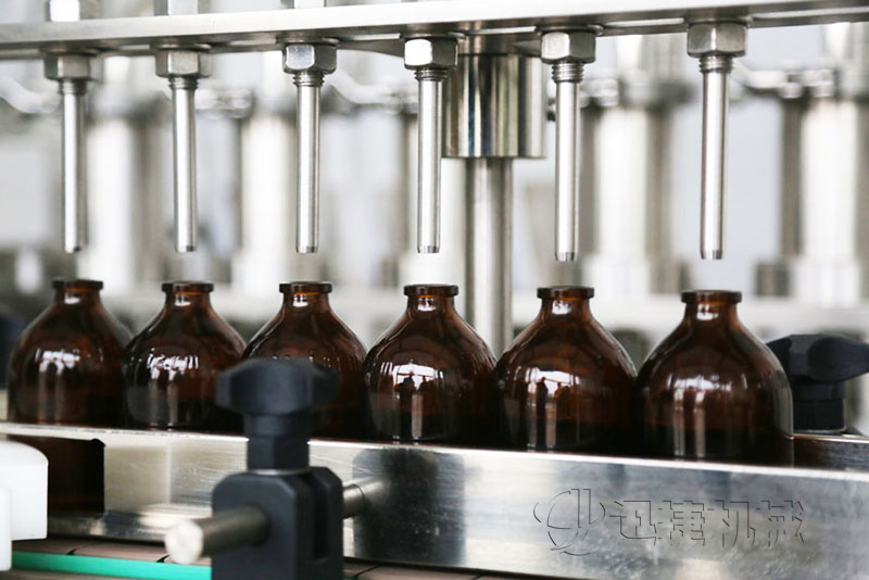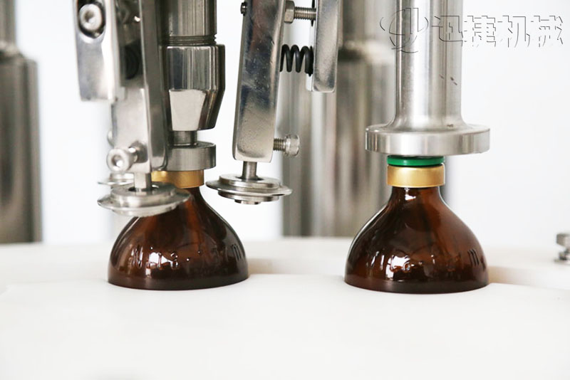 灌裝時灌裝頭潛入瓶底,緩慢上升,可有效防氣泡。灌裝針頭設(shè)有防滴漏裝置,確保灌裝精度,合格率大于99%。用柱塞式計量泵執(zhí)行灌裝,精度高;泵的結(jié)構(gòu)采用快接式拆卸機構(gòu),便于清洗、消毒。