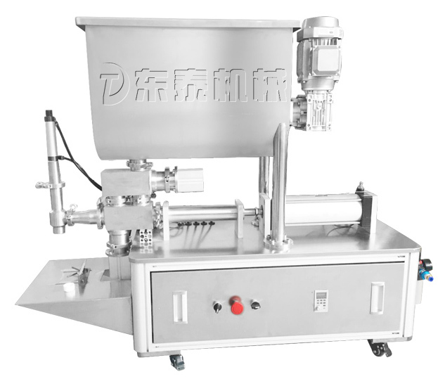 DTG-500-DV型半自動辣椒醬灌裝機結(jié)構(gòu)合理、機型小巧、性能可靠、定量準確、操作方便,動力部分采用氣動結(jié)構(gòu),均采用國內(nèi)知名氣動元件。物料接觸部分均采用304不銹鋼材料制成,符合GMP認證的要求。采用加大攪拌料斗,料斗容積可達120L,立的全鋁外殼銅芯攪拌電機,變頻調(diào)速,可適應(yīng)于各種醬料的灌裝??筛鶕?jù)用戶需要在機型范圍內(nèi)任意調(diào)節(jié)灌裝量及灌裝速度,灌裝精度高。灌裝悶頭采用防滴漏裝置。
